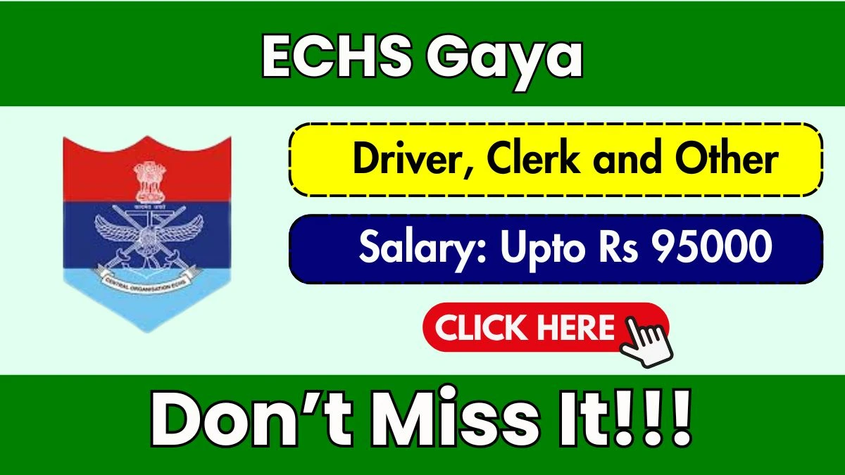 The Ex servicemen Contributory Health Scheme (ECHS Gaya) Recruitment 2026 for posts of 68 Driver, Clerk and Other. Candidates with Any Graduate, BDS, B.Pharma, B.Sc, MBBS, Diploma, GNM, 8TH Can Apply Offline. The Offline application closes on 05-02-2026. The candidate shall apply Offline through ECHS Gaya website, echs.gov.in.