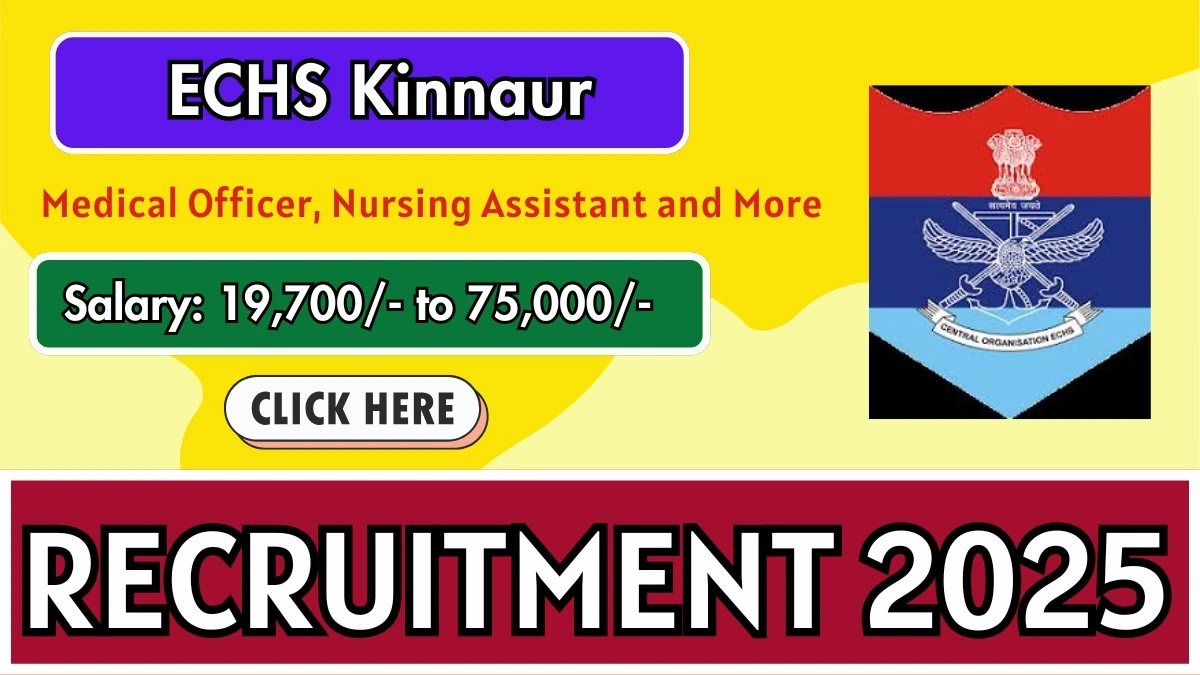 Ex-servicemen Contributory Health Scheme Kinnaur (ECHS Kinnaur) has released an official notification for the recruitment of 03 Medical Officer, Nursing Assistant and More Posts. Interested and eligible candidates can apply Offline through the official ECHS Kinnaur website. The last date to submit the application form is 03-11-2025. In this article, you’ll find the ECHS Kinnaur Medical Officer, Nursing Assistant and More Posts recruitment details, including eligibility criteria, age limit, salary structure, selection process, application steps, and direct links to the official notification and Offline application form.