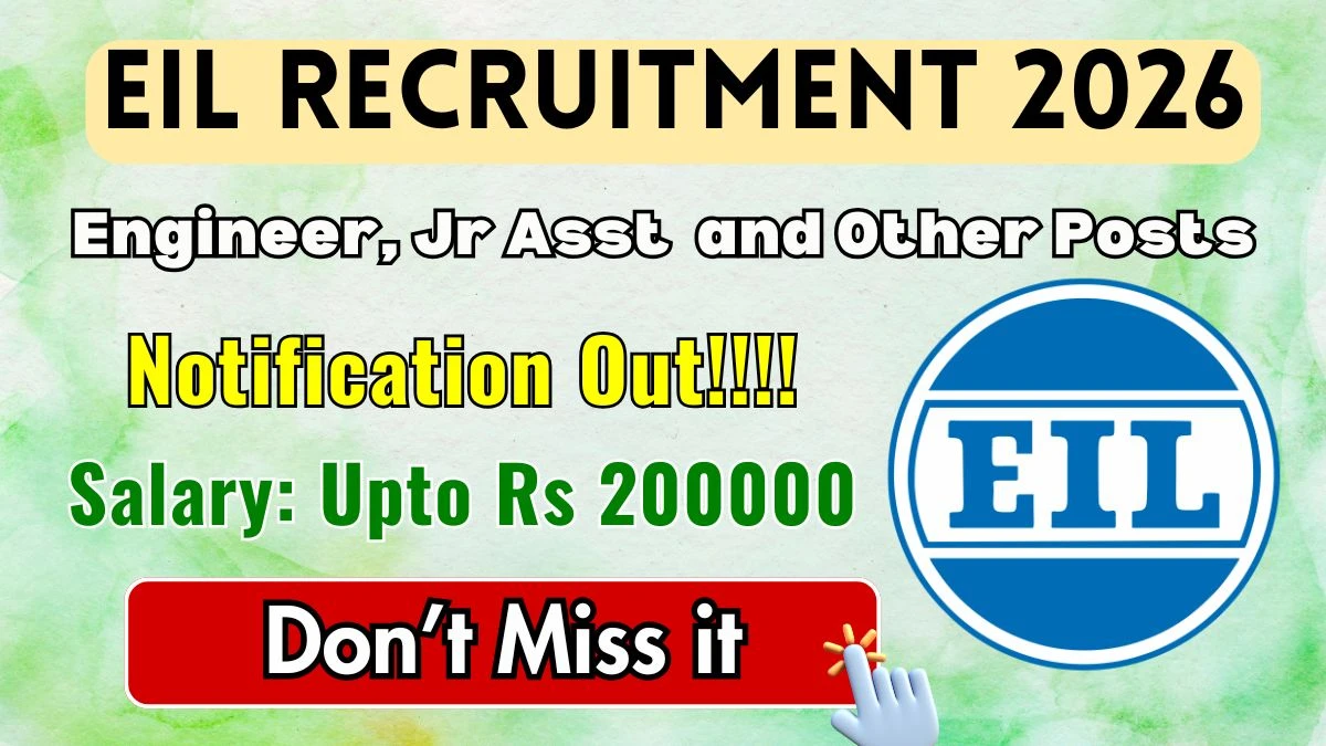 Engineers India (EIL) has released an official notification for the recruitment of 09 Engineer, Junior Assistant and Other Posts. Interested and eligible candidates can apply Online through the official EIL website. The last date to submit the application form is 04-02-2026. In this article, you’ll find the EIL Engineer, Junior Assistant and Other Posts recruitment details, including eligibility criteria, age limit, salary structure, selection process, application steps, and direct links to the official notification and Online application form.