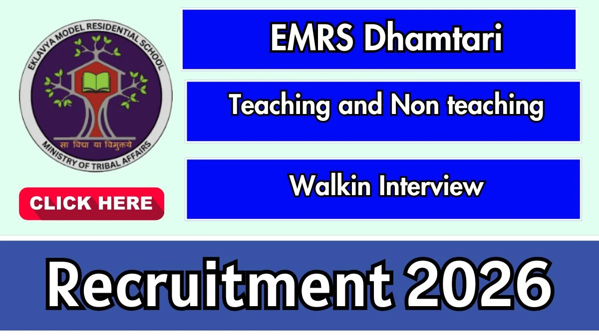 Eklavya Model Residential School Dhamtari (EMRS Dhamtari) has released an official notification for Walk-in Interview for Teaching and Non Teaching . Eligible candidates can attend the Walk-in Interview on at the EMRS Dhamtari office with original documents and self-attested copies.