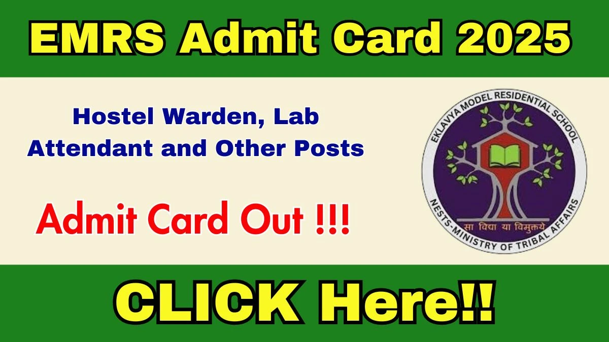 EMRS Admit Card 2025 has been released by National Education Society for Tribal Students (NESTS) on 19 December 2025. Candidates who applied for the Hostel Warden, Lab Attendant, Junior Secretariat Assistant, Female Staff Nurse and other non-teaching recruitment can download their admit card from the official website nests.tribal.gov.in. The written examination is scheduled for 21 December 2025 across various centers. This hall ticket is mandatory for appearing in the exam. Read below for the direct download link, step-by-step process, exam details, and important instructions for EMRS Admit Card 2025.