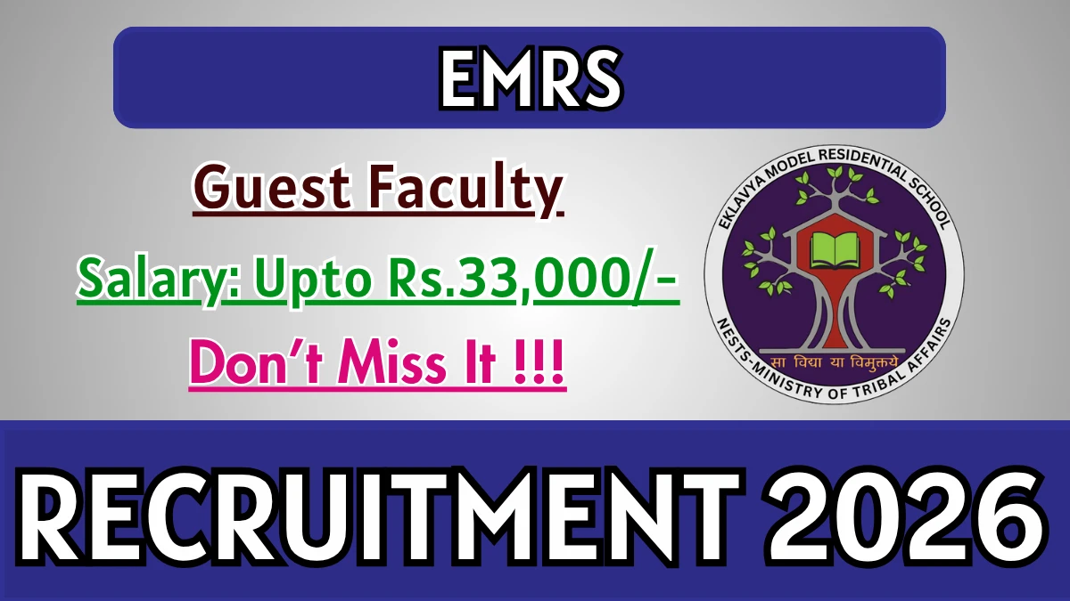 Eklavya Model Residential Schools (EMRS) (EMRS) Guest Faculty Notification 2026 has been released on the official website of EMRS. A total of 19 vacancies have been announced through the EMRS Guest Faculty Recruitment 2026.