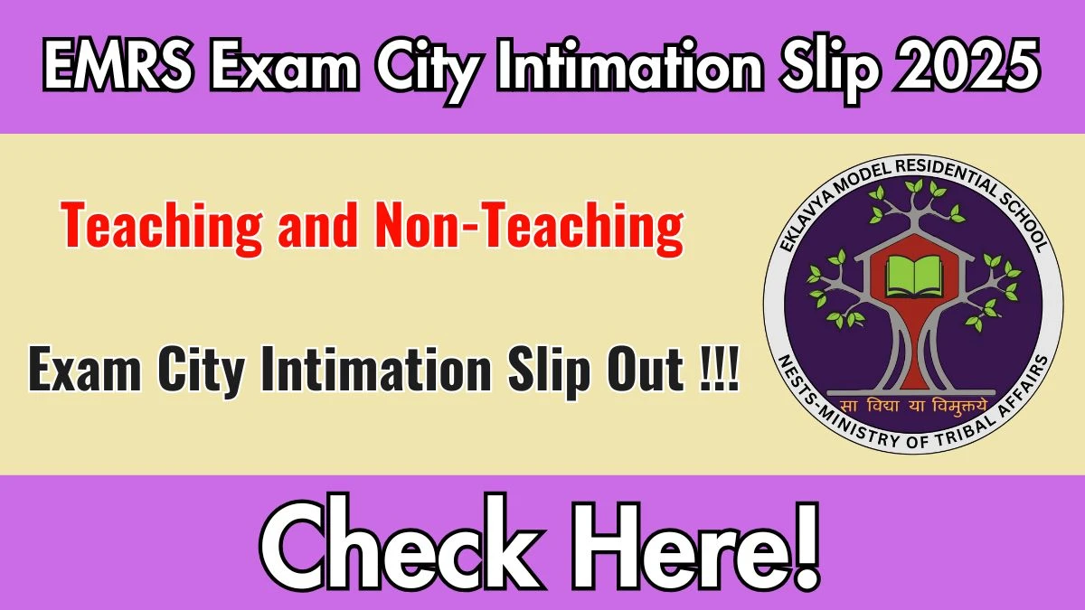 EMRS has officially released the City Intimation Slip 2025 for Teaching and Non-Teaching examination. Candidates appearing for EMRS Teaching and Non-Teaching exam can now download their exam city slip from the official website nests.tribal.gov.in. The city intimation slip contains crucial information about exam city, date, shift timing, and reporting time. This document helps candidates plan their travel and accommodation arrangements before the admit card release. In this article, we provide the direct download link, step-by-step instructions, and all important details about EMRS City Intimation Slip 2025.