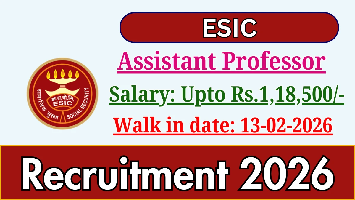 Employees State Insurance Corporation (ESIC) Recruitment 2026 for 01 posts of Assistant Professor. Candidates Can attend the walkin. The Walk-in on 13-02-2026. For detailed information please visit ESIC official website, https://esic.gov.in.