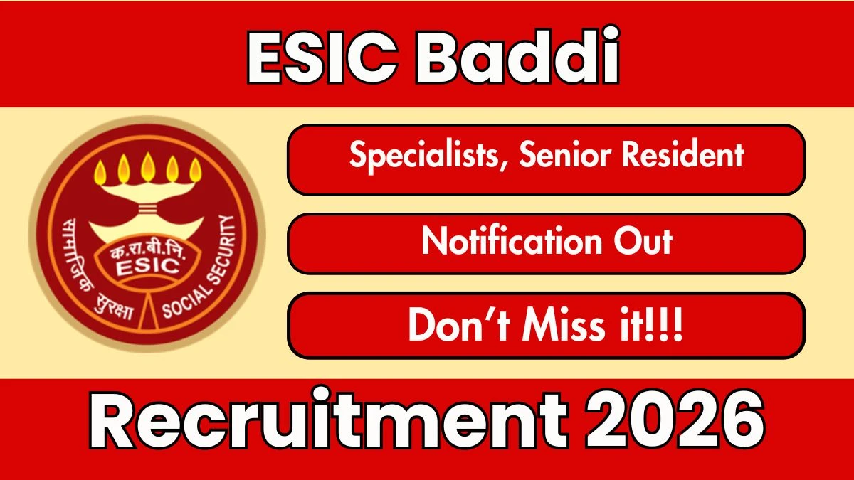 Employees State Insurance Corporation (ESIC Baddi) Recruitment 2025 for 44 posts of Specialists, Senior Resident. Candidates with PG Diploma, MS/MD Can attend the walkin. The Walk-in interview ends on 08-01-2026. For detailed information please visit ESIC Baddi official website, esic.gov.in.