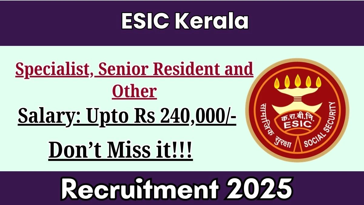 Employees State Insurance Corporation Model and Super Specialty Hospital (ESIC Kerala) Recruitment 2025 for 22 posts of Specialist, Senior Resident and Other. Candidates with DNB, PG Diploma, MS/MD, M.Ch, DM Can attend the walkin. The Walk-in interview on 07-01-2026. For detailed information please visit ESIC Kerala official website, esic.gov.in.