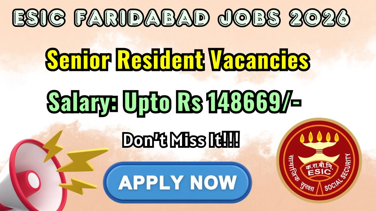 ESIC Medical College & Hospital Faridabad has released the official Senior Resident (Super Speciality Departments) Notification 2026 on 27th April 2026 at www.esic.nic.in. A total of 39 vacancies have been announced under the ESIC Medical College & Hospital Faridabad Senior Resident Recruitment 2026. Eligible candidates aged up to 45 years with a qualification of DM/MCh/DrNB/FNB in respective super-specialty or MD/MS/DNB in parent broad specialty can apply through a Walk-in Interview on 4th May 2026. The official notification PDF and application link are available below.