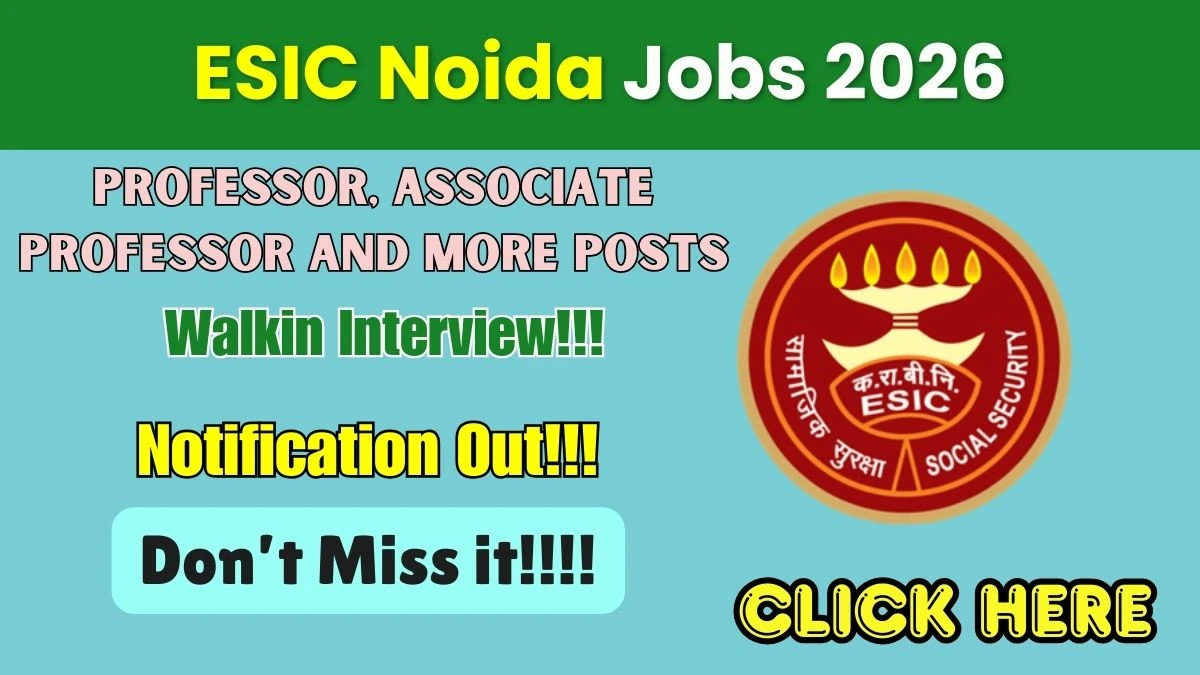 Employees' State Insurance Corporation (ESIC Noida) Recruitment 2026: Employees' State Insurance Corporation is conducting a Walk-in Interview for 34 Professor / Associate Professor / Assistant Professor posts. This recruitment provides an excellent opportunity for eligible candidates to attend the interview directly without any prior online application.
