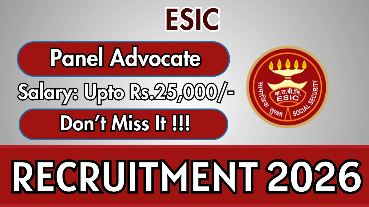 Employees' State Insurance Corporation (ESIC) has released an official notification for the recruitment of Panel Advocate Posts. Interested and eligible candidates can apply Offline by sending the application form to the official address. The last date to submit the application is 20-03-2026.