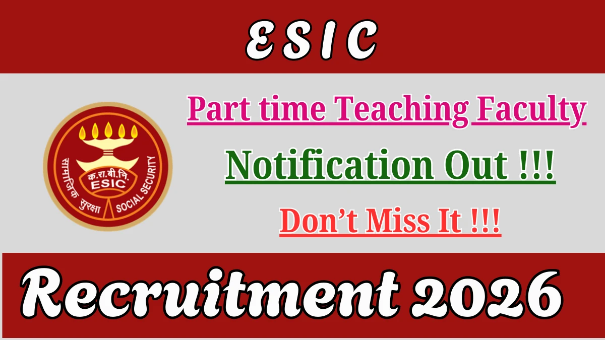 Employees State Insurance Corporation (ESIC) has released an official notification for the recruitment of 01 Part time Teaching Faculty Posts. Interested and eligible candidates can apply Offline through the official ESIC website. The last date to submit the application form is 04-01-2026. In this article, you’ll find the ESIC Part time Teaching Faculty Posts recruitment details, including eligibility criteria, age limit, salary structure, selection process, application steps, and direct links to the official notification and Offline application form.