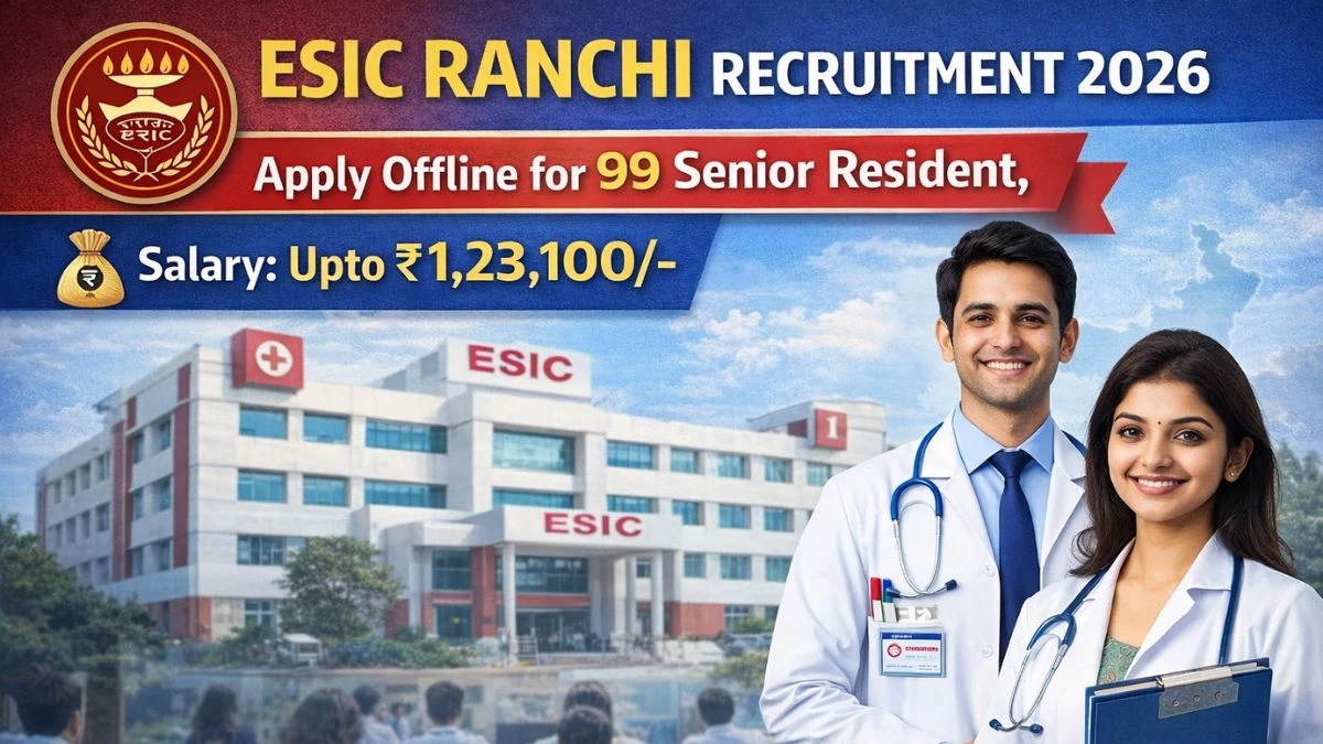 Employees State Insurance Corporation (ESIC Ranchi) has released an official notification for the recruitment of 99 Senior Resident, Teaching Faculty Posts. Interested and eligible candidates can apply Offline through the official ESIC Ranchi website. The last date to submit the application form is 03-01-2026. In this article, you’ll find the ESIC Ranchi Senior Resident, Teaching Faculty Posts recruitment details, including eligibility criteria, age limit, salary structure, selection process, application steps, and direct links to the official notification and Offline application form.
