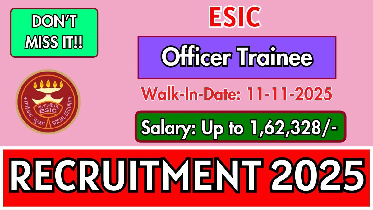 Employees State Insurance Corporation (ESIC) Recruitment 2025 for 30 posts of Senior Residents, Specialist or Part Time Contractual Specialist. Candidates with PG Diploma, MS/MD Can attend the walkin. The Walk-in on 11-11-2025. For detailed information please visit ESIC official website, esic.gov.in.