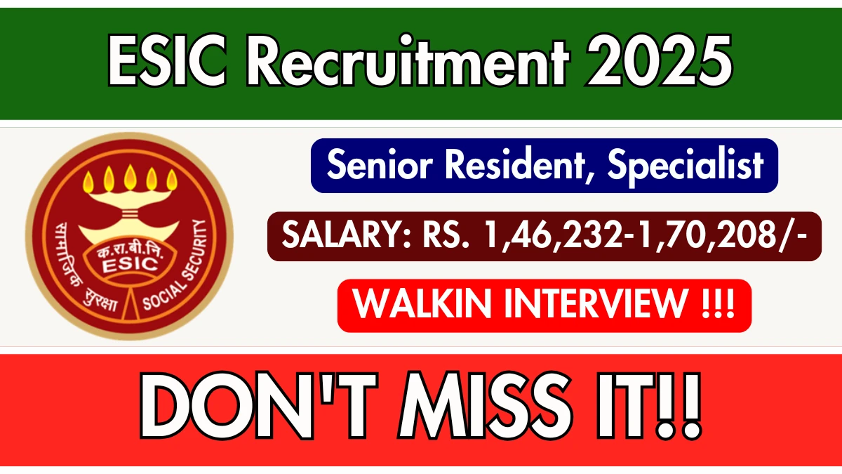 Name of the Post: ESIC Senior Resident, Specialist Walk in 2025