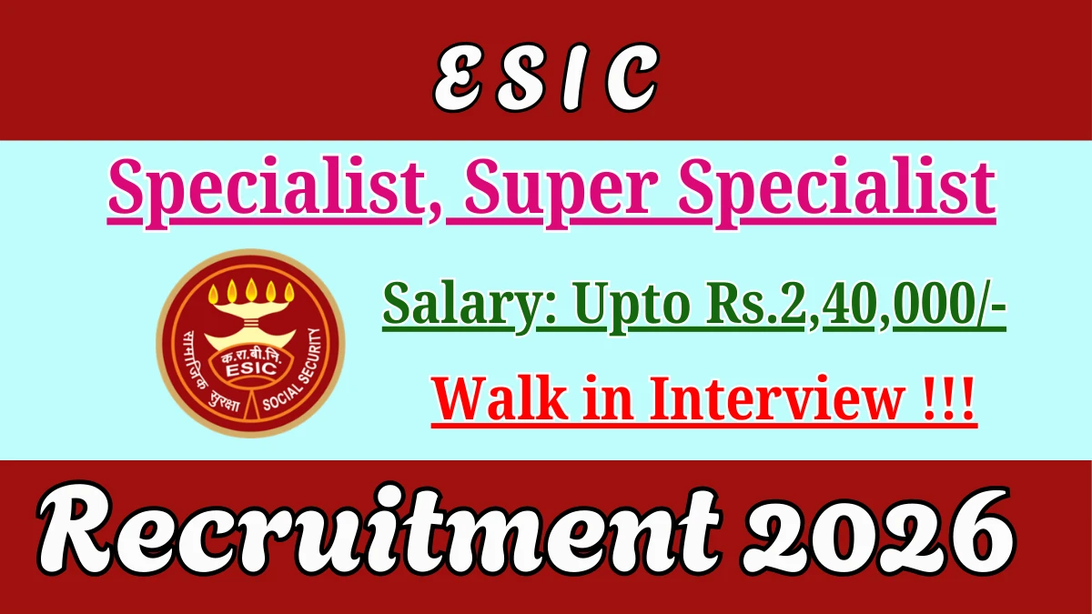Employees State Insurance Corporation (ESIC) Recruitment 2026 for 06 posts of Specialist, Super Specialist. Candidates with MBBS, DNB, MS/MD, M.Ch, DM Can attend the walkin. The Walk-in on 06-02-2026. For detailed information please visit ESIC official website, https://esic.gov.in.