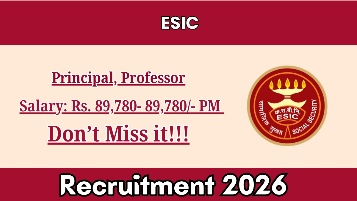 Employees' State Insurance Corporation (ESIC) Recruitment 2026: Employees' State Insurance Corporation is conducting a Walk-in Interview for 2 Principal, Professor. This recruitment provides an excellent opportunity for eligible candidates to attend the interview directly without any prior online application.