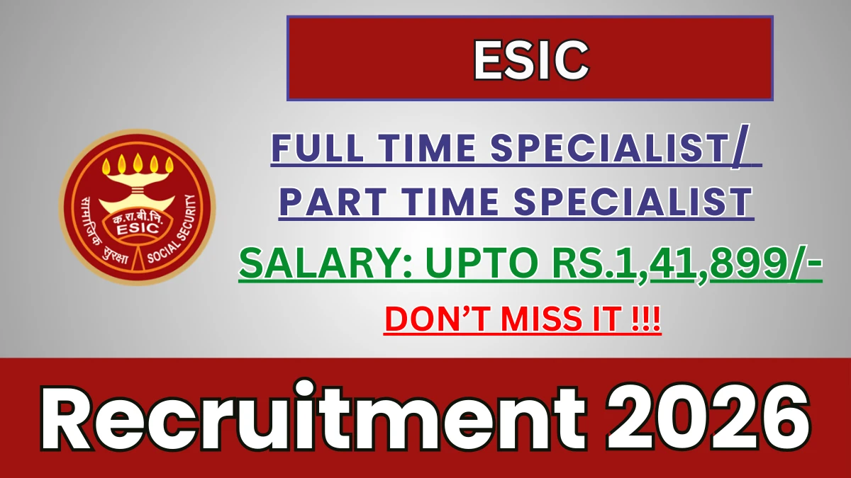 Employees' State Insurance Corporation (ESIC) has released an official notification for Walk-in Interview for 8 Full Time Specialist / Part Time Specialist Posts. Eligible candidates can attend the Walk-in Interview on 06-03-2026 at the ESIC office with original documents and self-attested copies.