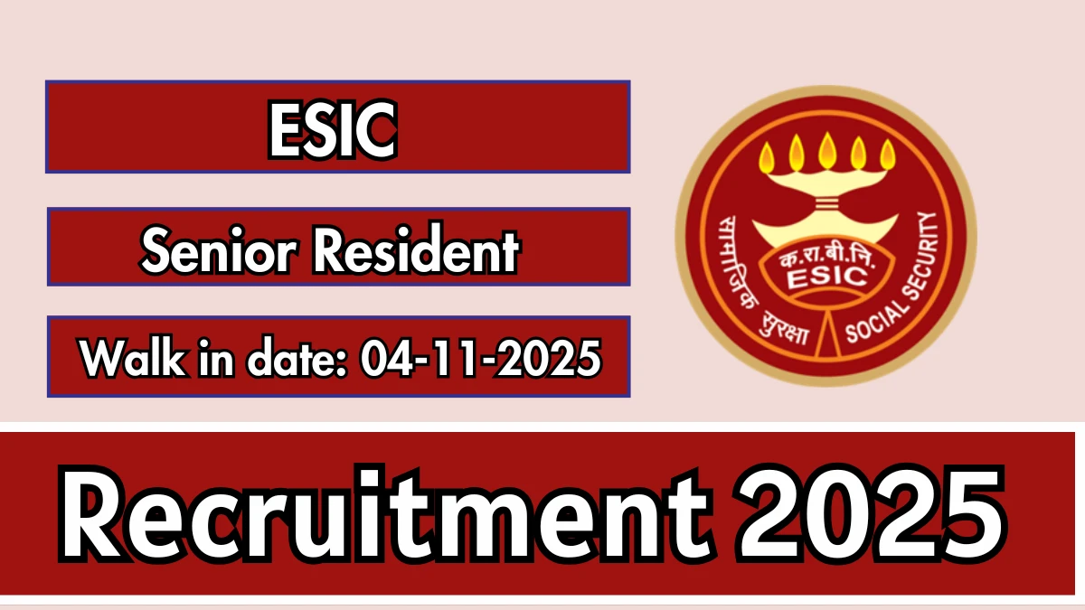 Employees State Insurance Corporation (ESIC) Recruitment 2025 for 01 posts of Senior Resident. Candidates with Any Bachelors Degree Can attend the walkin. The Walk-in on 04-11-2025. For detailed information please visit ESIC official website, esic.gov.in.