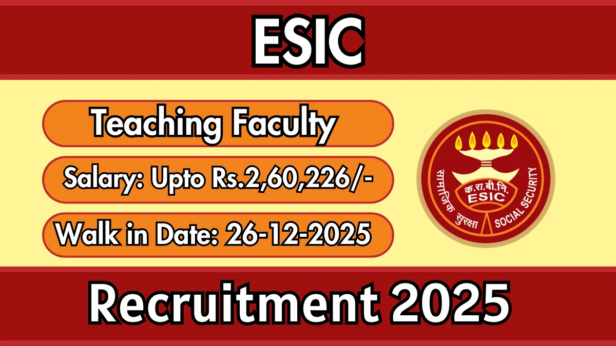 Employees State Insurance Corporation (ESIC) Recruitment 2025 for 21 posts of Teaching Faculty. Candidates Can attend the walkin. The Walk-in on 26-12-2025. For detailed information please visit ESIC official website, esic.gov.in.