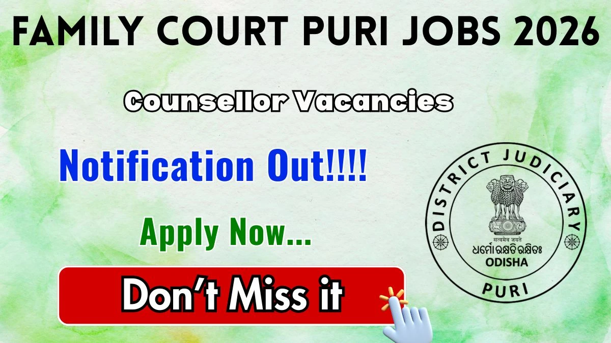 Family Court Puri Counsellor Notification 2026 has been released on the official website of puri.odisha.gov.in. A total of 1 vacancy has been announced through the Family Court Puri Counsellor Recruitment 2026.