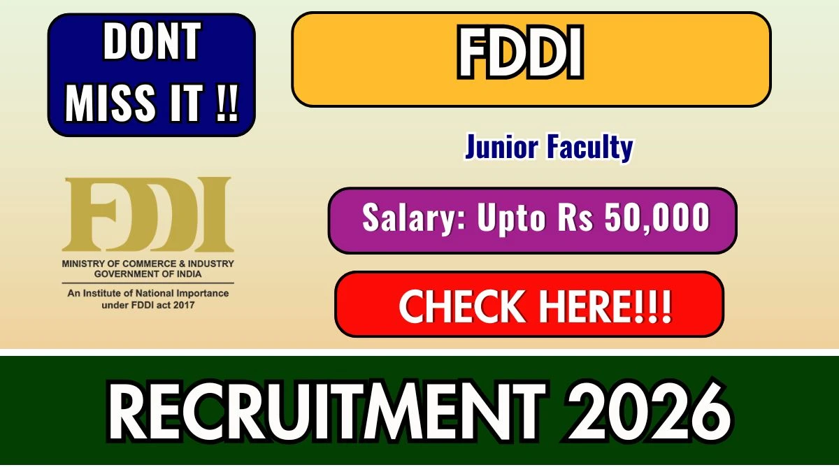 Footwear Design and Development Institute (FDDI) has released an official notification for the recruitment of 02 Junior Faculty Posts. Interested and eligible candidates can apply Online through the official FDDI website. The last date to submit the application form is 10-01-2026. In this article, you’ll find the FDDI Junior Faculty Posts recruitment details, including eligibility criteria, age limit, salary structure, selection process, application steps, and direct links to the official notification and Online application form.