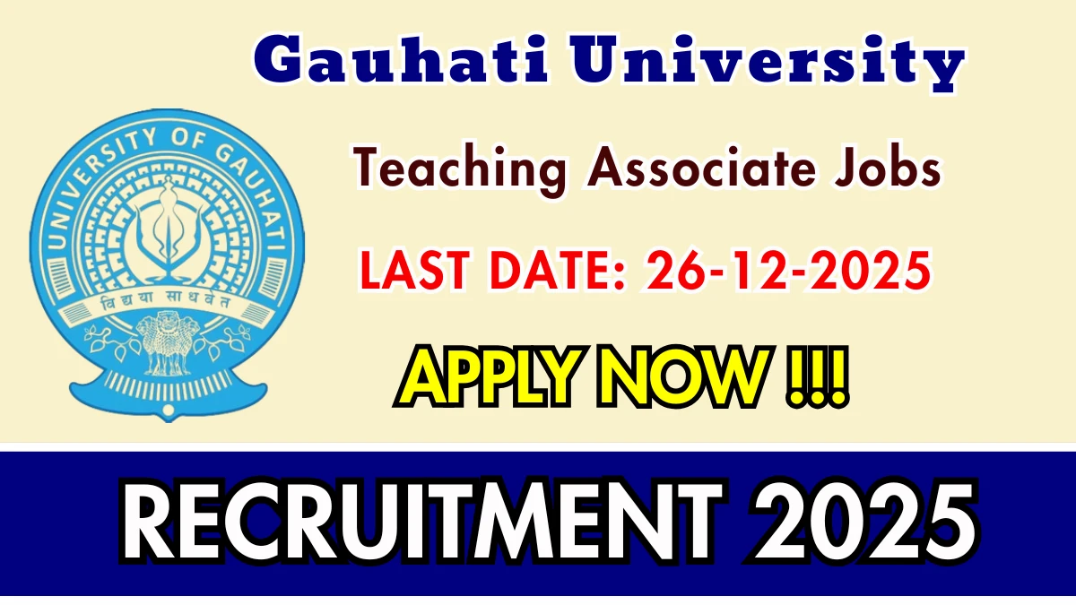 The Gauhati University Recruitment 2025 for Not Mentioned posts of Teaching Associate. Candidates with M.Phil/Ph.D Can Apply Online. The online application opens on 18-12-2025, and closes on 26-12-2025. The candidate shall apply online through Gauhati University website, gauhati.ac.in.