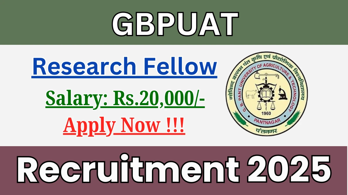 Govind Ballabh Pant University of Agriculture and Technology (GBPUAT) has released an official notification for the recruitment of 01 Research Fellow Posts. Interested and eligible candidates can apply Offline through the official GBPUAT website. The last date to submit the application form is 22-12-2025. In this article, you’ll find the GBPUAT Research Fellow Posts recruitment details, including eligibility criteria, age limit, salary structure, selection process, application steps, and direct links to the official notification and Offline application form.