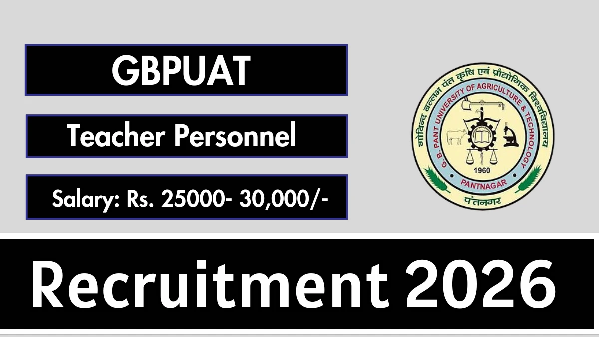 G.B.Pant University of Agriculture and Technology (GBPUAT) Recruitment 2026 for 10 posts of Teacher Personnel. Candidates with B.Tech/B.E, M.E/M.Tech, MCA Can attend the walkin. The Walk-in on 09-02-2026. For detailed information please visit GBPUAT official website,.gbpuat.ac.in.