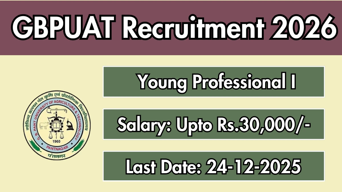 Govind Ballabh Pant University of Agriculture and Technology (GBPUAT) has released an official notification for the recruitment of 01 Young Professional I Posts. Interested and eligible candidates can apply Offline through the official GBPUAT website. The last date to submit the application form is 24 December 2025. In this article, you’ll find the GBPUAT Young Professional I Posts recruitment details, including eligibility criteria, age limit, salary structure, selection process, application steps, and direct links to the official notification and Offline application form.