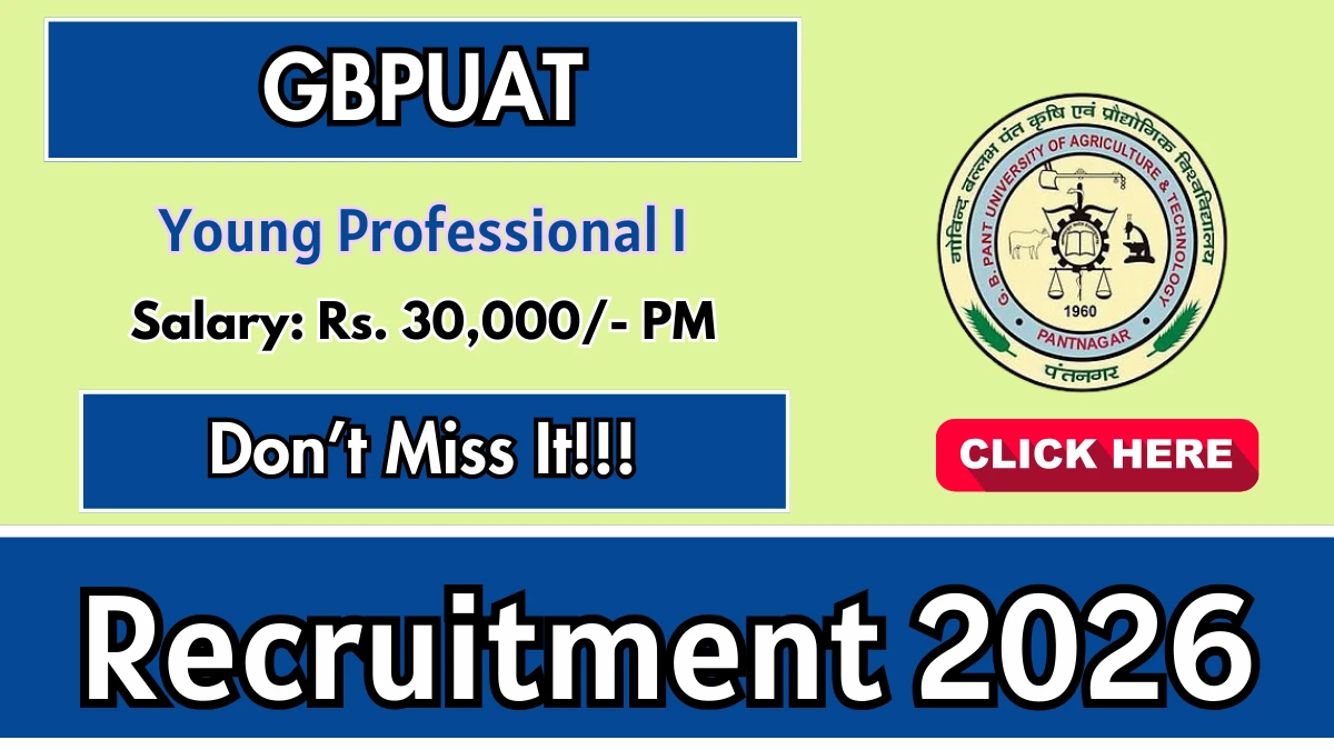 G.B. Pant University of Agriculture & Technology (GBPUAT) has officially released a notification for the recruitment of 1 Young Professional I Posts. This recruitment drive offers a great opportunity for candidates looking for government jobs. Interested and eligible candidates can apply by sending their resume and documents to the official email address.The email application must be submitted on or before 09-03-2026. Candidates are advised to send their applications well before the deadline.