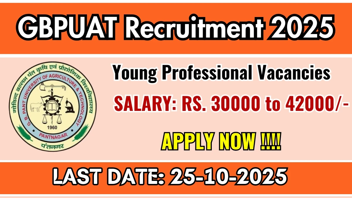 G B Pant University of Agriculture and Technology (GBPUAT) has released an official notification for the recruitment of 02 Young Professional Posts. Interested and eligible candidates can apply Offline through the official GBPUAT website. The last date to submit the application form is 17-10-2025. In this article, you’ll find the GBPUAT Young Professional Posts recruitment details, including eligibility criteria, age limit, salary structure, selection process, application steps, and direct links to the official notification and Offline application form.