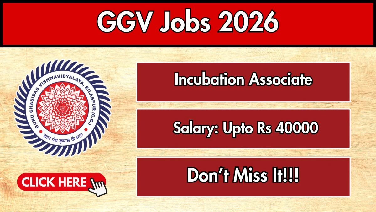 DST-inclusive Technology Business Incubation-GGV, Guru Ghasidas Vishwavidyalaya (GGV) Recruitment 2026: DST-inclusive Technology Business Incubation-GGV, Guru Ghasidas Vishwavidyalaya has released the official notification for 1 Incubation Associate posts, inviting applications from eligible candidates in Chhattisgarh. This recruitment provides an excellent opportunity for candidates seeking stable and well-paid education jobs.