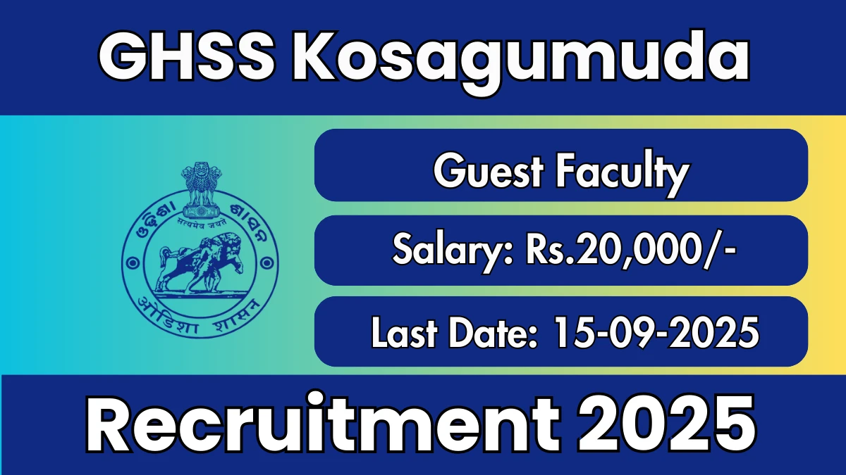 The Govt. Higher Secondary School Kosagumuda (GHSS Kosagumuda) Recruitment 2025 for posts of Guest Faculty. Candidates Can Apply Offline. The Offline application opens on 26-08-2025, and closes on 15-09-2025. The candidate shall apply Offline through GHSS Kosagumuda website, nabarangpur.odisha.gov.in.