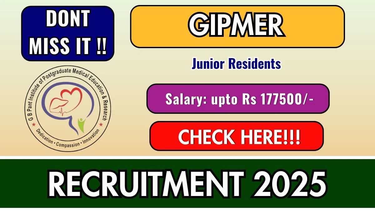 GIPMER Junior Residents Recruitment 2025 Vacancy Details |
