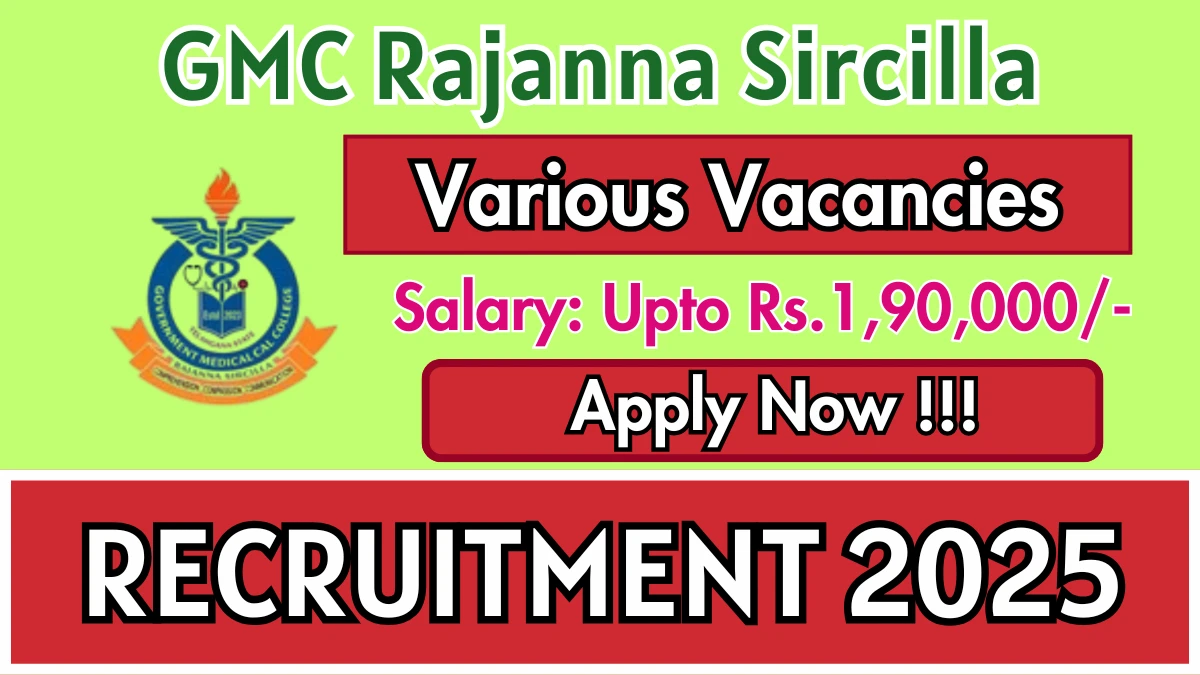 Government Medical College Rajanna Sircilla (GMC Rajanna Sircilla) has released an official notification for the recruitment of 78 Professor, Senior Residents and More Posts. Interested and eligible candidates can apply Offline through the official GMC Rajanna Sircilla website. The last date to submit the application form is 22-11-2025. In this article, you’ll find the GMC Rajanna Sircilla Professor, Senior Residents and More Posts recruitment details, including eligibility criteria, age limit, salary structure, selection process, application steps, and direct links to the official notification and Offline application form.