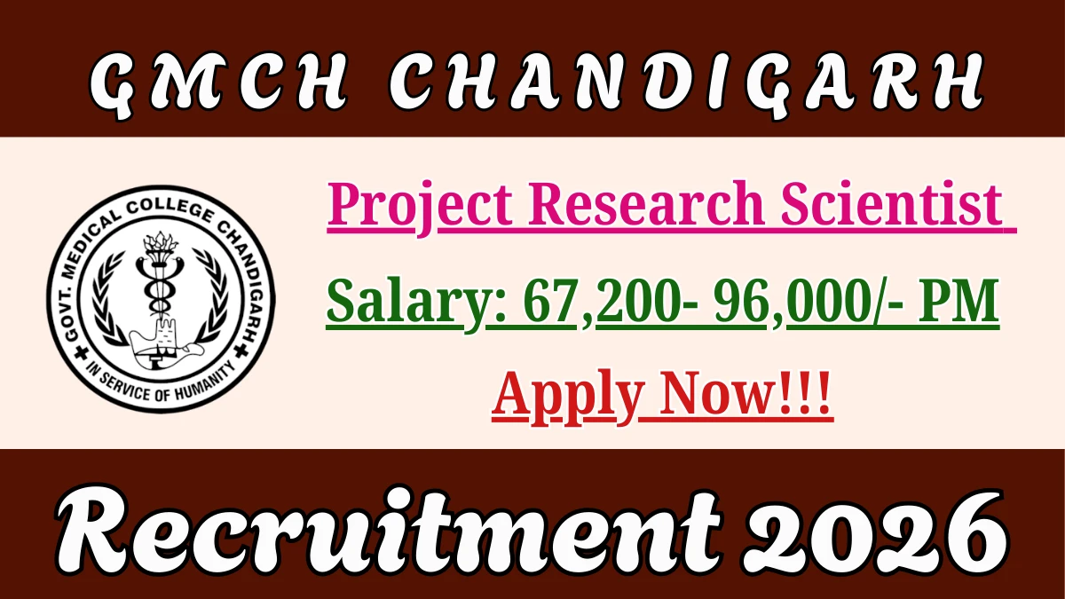 Government Medical College Hospital Chandigarh (GMCH Chandigarh) has released an official notification for the recruitment of 03 Project Research Scientist Posts. Interested and eligible candidates can apply Online through the official GMCH Chandigarh website. The last date to submit the application form is 27-02-2026. In this article, you’ll find the GMCH Chandigarh Project Research Scientist Posts recruitment details, including eligibility criteria, age limit, salary structure, selection process, application steps, and direct links to the official notification and Online application form.