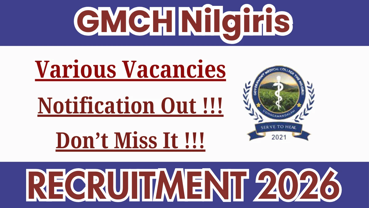 The Government Medical College Hospital Nilgiris (GMCH Nilgiris) has released 07 Quality Manager, Physiotherapist and More vacancies. Eligible candidates with B.Sc, Diploma, Any Masters Degree degree can apply Offline from December 23, 2025, to December 30, 2025, at nilgiris.nic.in.