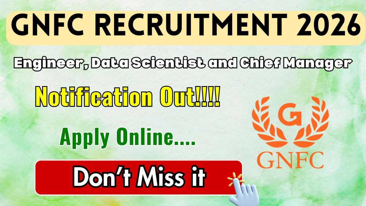 Gujarat Narmada Valley Fertilizers and Chemicals (GNFC) has released an official notification for the recruitment of Engineer, Data Scientist and Chief Manager Posts. Interested and eligible candidates can apply Online through the official GNFC website. The last date to submit the application form is 03-02-2026. In this article, you’ll find the GNFC Engineer, Data Scientist and Other Posts recruitment details, including eligibility criteria, age limit, salary structure, selection process, application steps, and direct links to the official notification and Online application form.