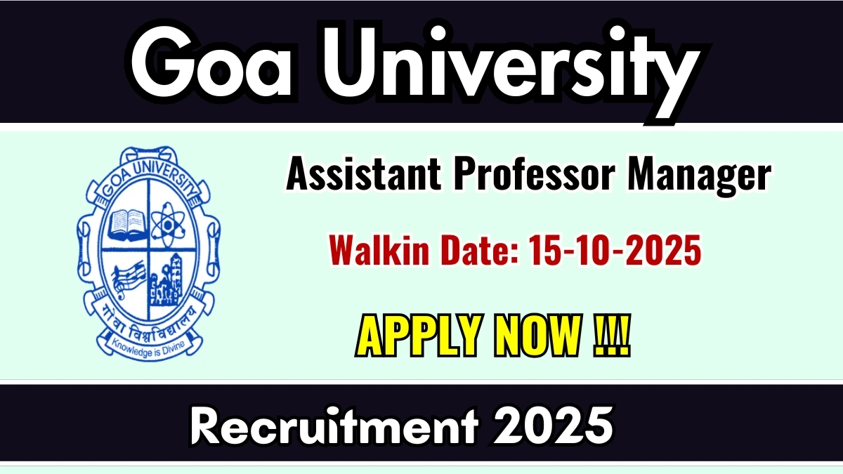 Goa University Recruitment 2025 for 01 posts of Assistant Professor. Candidates with Any Masters Degree, M.Phil/Ph.D Can attend the walkin. The Walk-in on 15-10-2025. For detailed information please visit Goa University official website, unigoa.ac.in.
