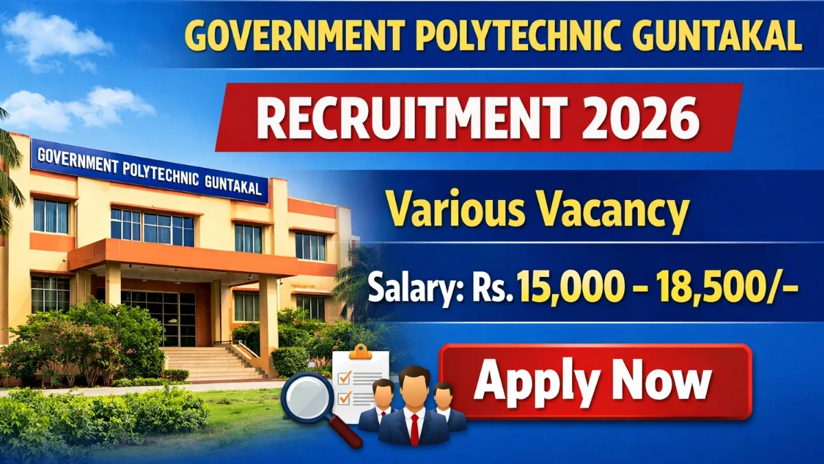 Government Polytechnic Guntakal has released the Government Polytechnic Guntakal Recruitment 2026 notification for 6 outsourcing posts including Electrician (EEE Branch), Lab Attender (Mechanical), Watchman, Sweeper and Scavenger on a contractual basis. These vacancies are available for candidates with qualifications ranging from Diploma, ITI, and V Class, depending on the post requirements, in the institution under the Department of Technical Education, Government of Andhra Pradesh.