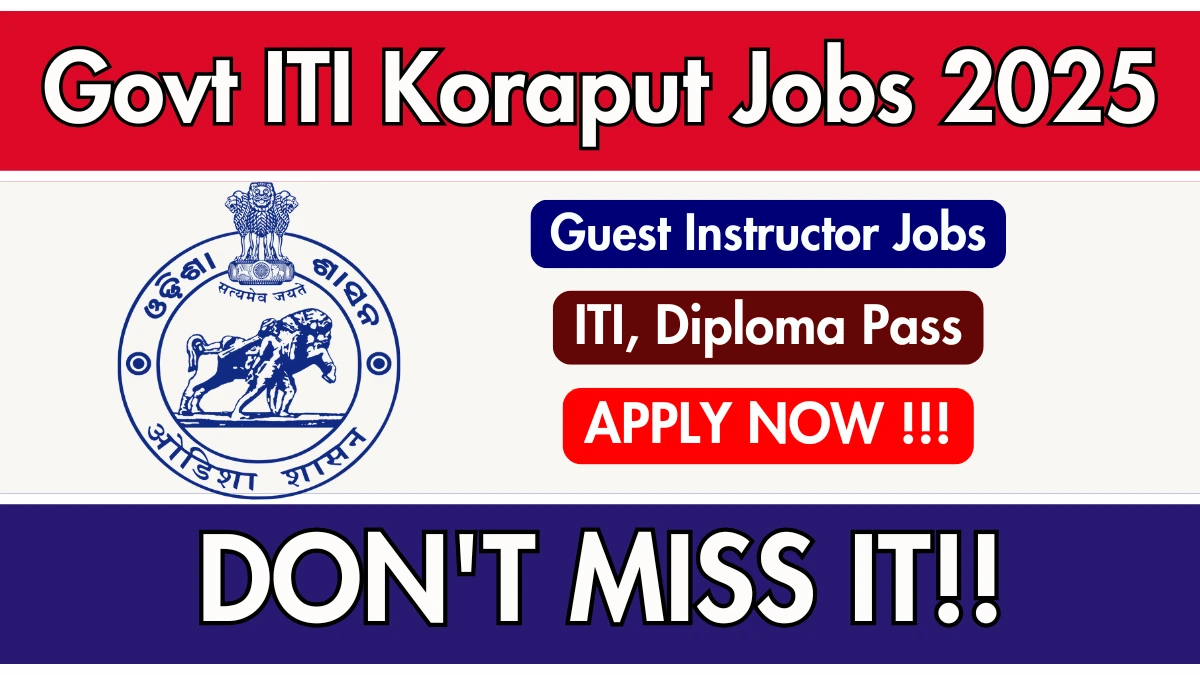 Government Industrial Training Institute Koraput (Govt ITI Koraput) Recruitment 2025 forposts of Guest Instructor. Candidates with Diploma, ITI, B.Voc Can attend the walkin. The Walk-in on 22-12-2025. For detailed information please visit Govt ITI Koraput official website, koraput.odisha.gov.in.