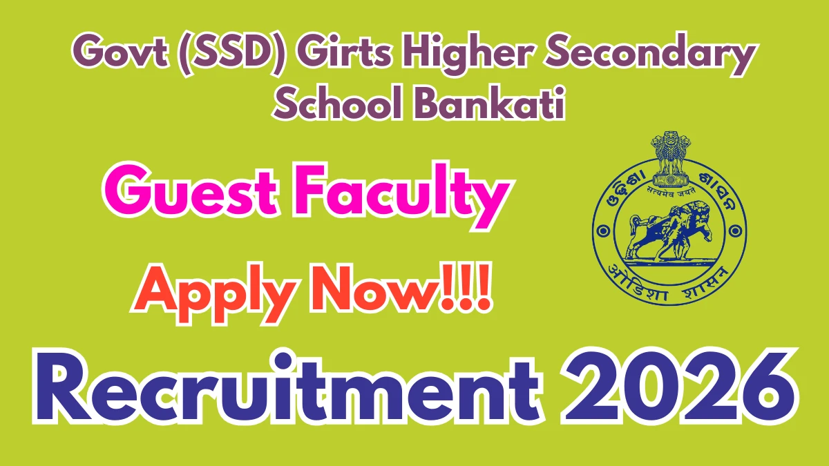 The Govt (SSD) Girts Higher Secondary School Bankati Recruitment 2026 for posts of Guest Faculty. Candidates with B.Ed, Any Masters Degree Can Apply Offline. The Offline application opens on 31-12-2025, and closes on 16-01-2026. The candidate shall apply Offline through Govt (SSD) Girts Higher Secondary School Bankati website, mayurbhanj.odisha.gov.in.