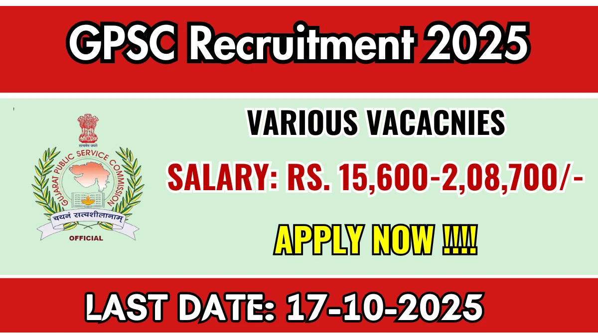 Gujarat Public Service Commission (GPSC) has released an official notification for the recruitment of 16 Manager, Private Secretary and More Posts. Interested and eligible candidates can apply Online through the official GPSC website. The last date to submit the application form is 17-10-2025. In this article, you’ll find the GPSC Manager, Private Secretary and More Posts recruitment details, including eligibility criteria, age limit, salary structure, selection process, application steps, and direct links to the official notification and Online application form.