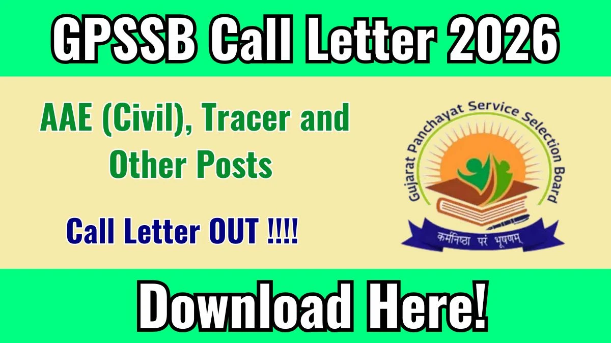 GPSSB Call Letter 2026 has been released by Gujarat Panchayat Service Selection Board for Class-3 posts including Additional Assistant Engineer (Civil), Tracer, Research Assistant, and Statistical Assistant. Candidates who applied (Advt. No. 5/2025-26, 8/2025-26, 18/2025-26, 19/2025-26) can download their call letters from the official website gpssb.gujarat.gov.in during the specified periods. The Computer Based Response Test (CBRT) is scheduled in January and February 2026 across various centers in Gujarat. This call letter is mandatory for appearing in the exam. Read below for the direct download link, step-by-step process, exam details, and important instructions for GPSSB Call Letter 2026.
