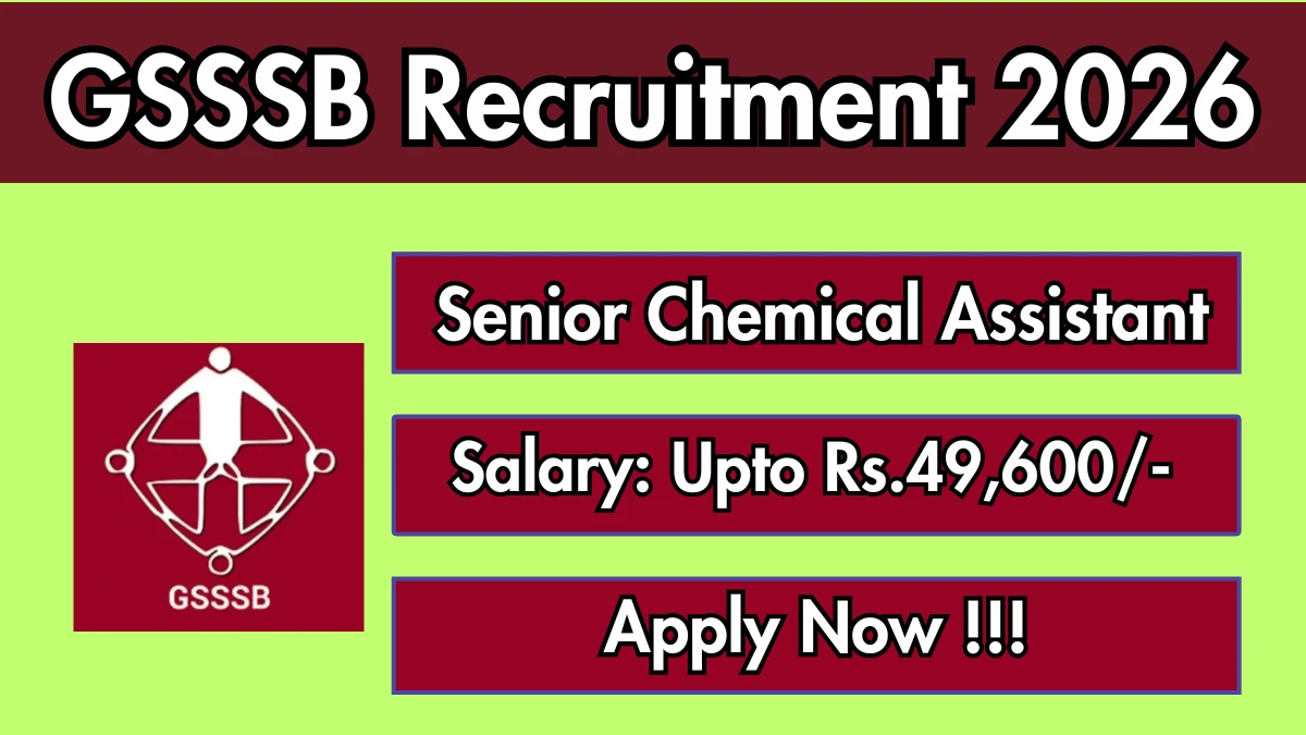 Gujarat Subordinate Service Selection Board (GSSSB) has released an official notification for the recruitment of 01 Senior Chemical Assistant Posts. Interested and eligible candidates can apply Online through the official GSSSB website. The last date to submit the application form is 13-02-2026. In this article, you’ll find the GSSSB Senior Chemical Assistant Posts recruitment details, including eligibility criteria, age limit, salary structure, selection process, application steps, and direct links to the official notification and Online application form.