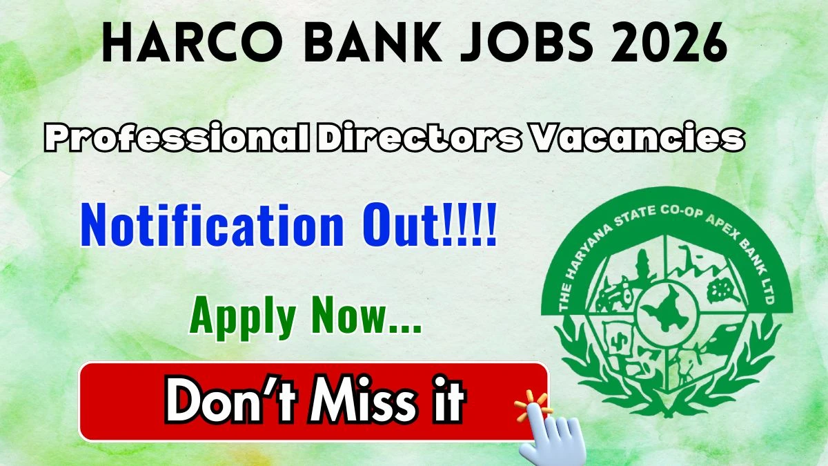 Haryana State Cooperative Apex Bank (Harco Bank) Professional Director Notification 2026 has been released on the official website of harco.bank.in. A total of 2 vacancies have been announced through the Harco Bank Professional Director Recruitment 2026.