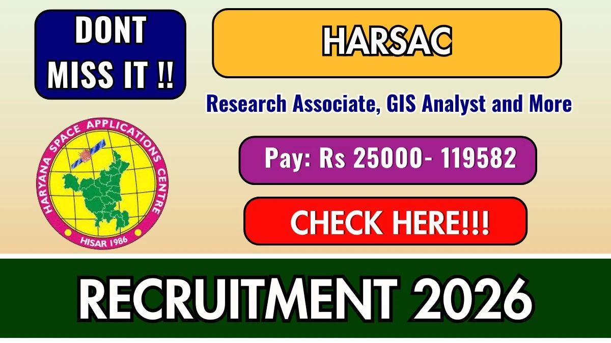 Haryana Space Applications Centre (HARSAC) Recruitment 2026 for 12 posts of Various Project Positions. Candidates with Master's Degree, Bachelor's Degree, P.G. Diploma Can Apply Online. The last date to apply online is 20-03-2026. The candidate shall apply online through HARSAC official website.