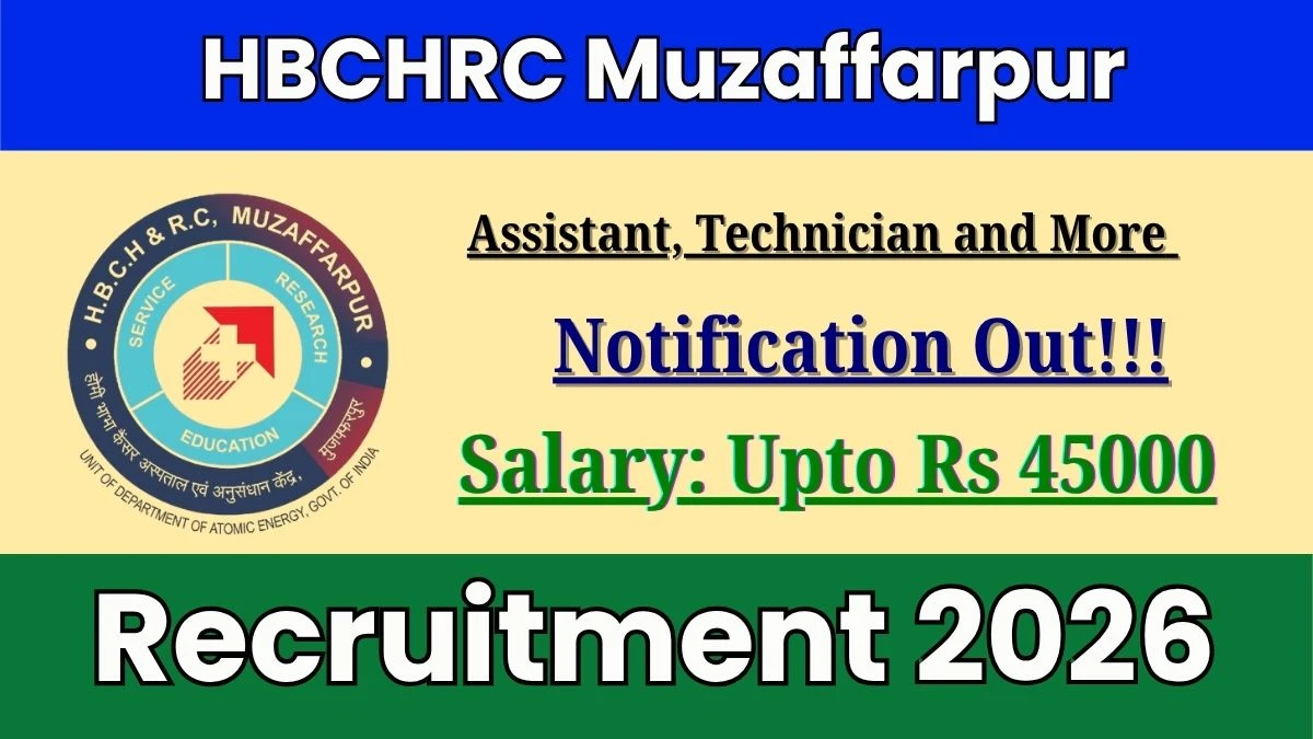 HBCHRC Muzaffarpur Recruitment 2026 - Walkin for Assistant, Technician and More Posts