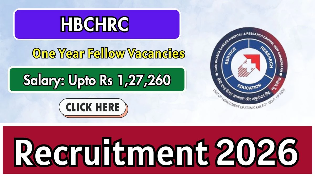Homi Bhabha Cancer Hospital & Research Centre (HBCHRC) Recruitment 2026 for 01 posts of One Year Fellow. Candidates with MS/MD Can attend the walkin. The Walk-in starts from 30-01-2026, and ends on 31-03-2026. For detailed information please visit HBCHRC official website, tmc.gov.in.