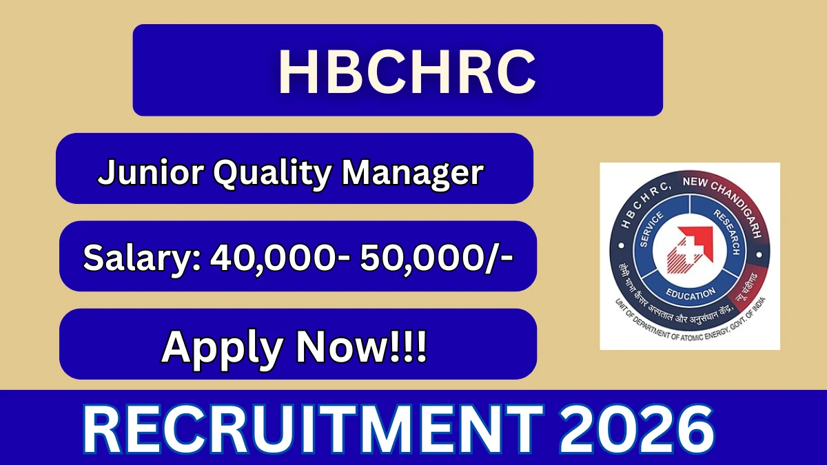 Homi Bhabha Cancer Hospital & Research Centre (HBCHRC) Junior Quality Manager Notification 2026 has been released on 22 April 2026 on the official website. A total of 1 vacancy has been announced through the HBCHRC Junior Quality Manager Recruitment 2026.