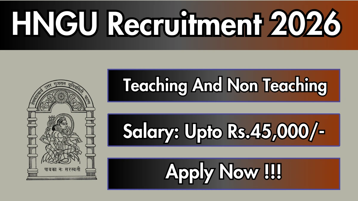 Hemchandracharya North Gujarat University (HNGU) has released an official notification for the recruitment of 12 Teaching And Non Teaching Posts. Interested and eligible candidates can apply Online through the official HNGU website. The last date to submit the application form is 23-02-2026. In this article, you’ll find the HNGU Teaching And Non Teaching Posts recruitment details, including eligibility criteria, age limit, salary structure, selection process, application steps, and direct links to the official notification and Online application form.